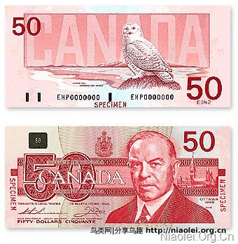 编辑本段文化象征 雪鸮是加拿大魁北克的省鸟,而1986年发行的面值50加拿大元纸币上也有雪鸮的形象;前任加拿大总督朱尔斯·莱杰(Jules Léger)的纹章的主要图案也是雪鸮。网络用语ORLY中的猫头鹰形象就是雪鸮。雪鸮可能是欧洲史前洞窟壁画中能辨别出的最古老的鸟类。 在系列儿童文学作品《哈利·波特》中,具有魔力的主人公哈利·波特豢养了一只名为海德薇(Hedwig)的雪鸮作为他在魔法世界的信使,这部作品和由它所改编的电影的流行,使得雪鸮可爱的形象深入人心。 编辑本段种群现状该物种分布范围广,不接近物种生存的脆弱濒危临界值标准(分布区域或波动范围小于20000平方公里,栖息地质量,种群规模,分布区域碎片化),种群数量趋势稳定,全球雪鸮的数目达到29万只,活动范围大约为100万~1000万k㎡,因此被评价为无生存危机的物种。 雪鸮面临的最大威胁是人类活动对它们生活环境的影响,它们主要的死因是与输电线、篱笆、汽车发生碰撞,而且人们有时也会因为食用它们的肉、作为纪念品或者保护狩猎得到的动物而捕杀雪鸮。目前,在雪鸮分布较广泛的加拿大各省和地区已经颁布条例,禁止在全国范围内捕杀雪鸮。 编辑本段保护等级 列入《世界自然保护联盟》(IUCN) 2012年濒危物种红色名录ver 3.1——低危(LC)。 列入《华盛顿公约》CITESⅠ级保护动物。 1989年被列入中国国家二级重点保护野生动物名录 |