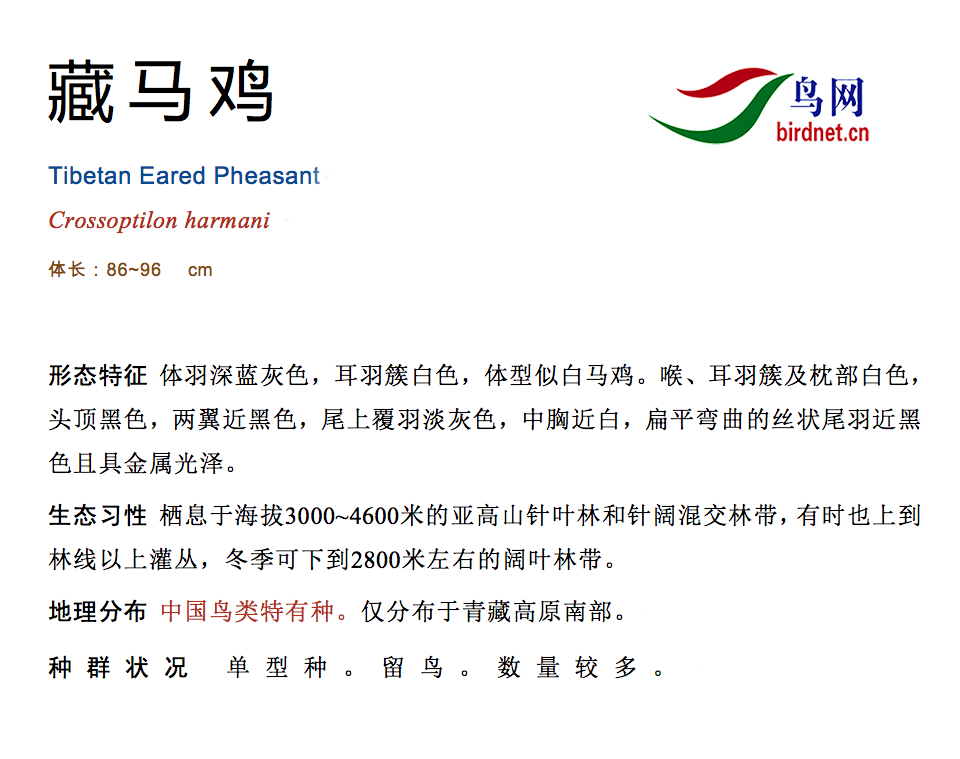鸟种目科:鸡形目 > - 雉科 > - 藏马鸡