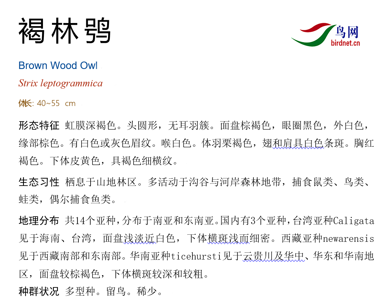 鸟种目科:鸮形目 > - 鸱鸮科 > - 褐林鸮