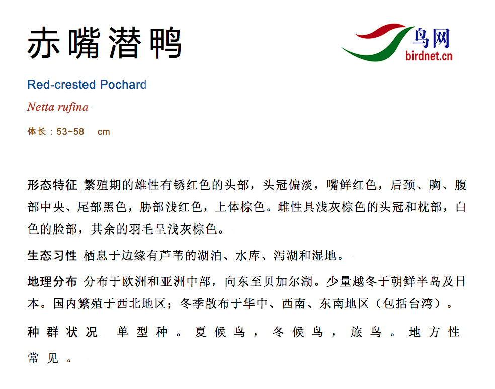 鸟种目科:雁形目 > - 鸭科 > - 赤嘴潜鸭