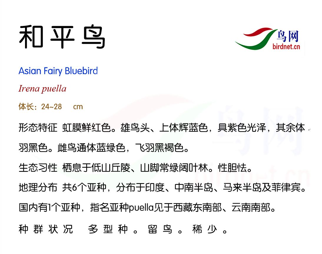 鸟种目科:雀形目 > - 和平鸟科 > - 和平鸟