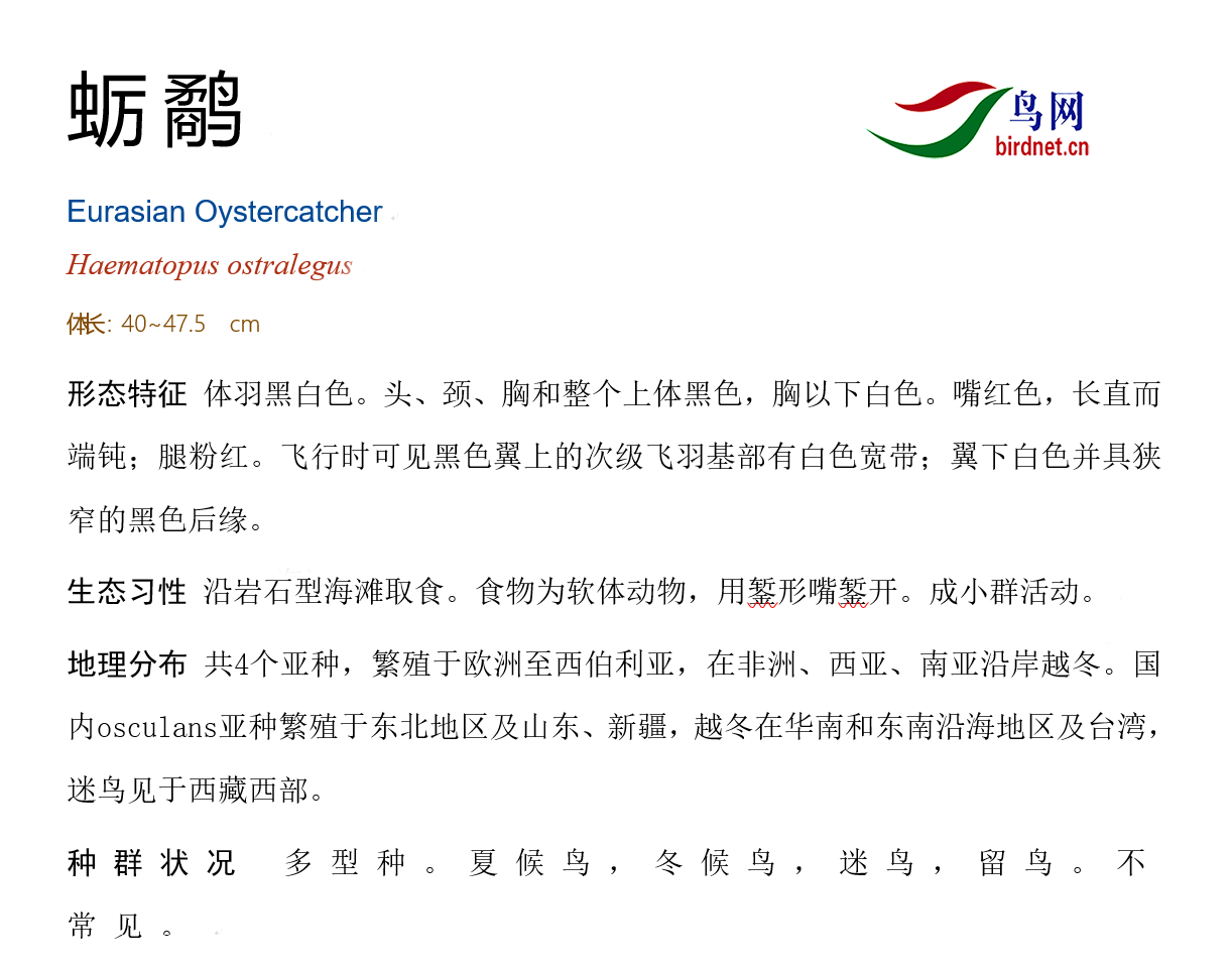 鸟类名称:蛎鹬