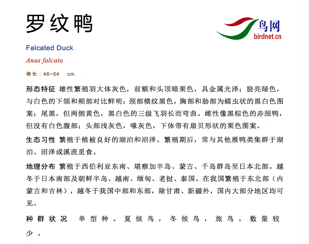 鸟种目科:雁形目 > - 鸭科 > - 罗纹鸭