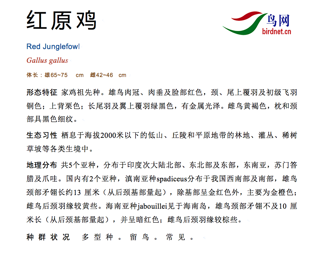 鸟类名称:红原鸡