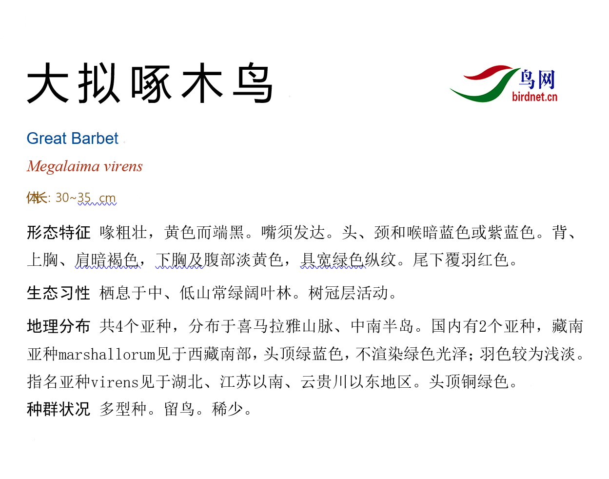 鸟种目科:啄木鸟目 > - 拟啄木鸟科 > - 大拟啄木鸟