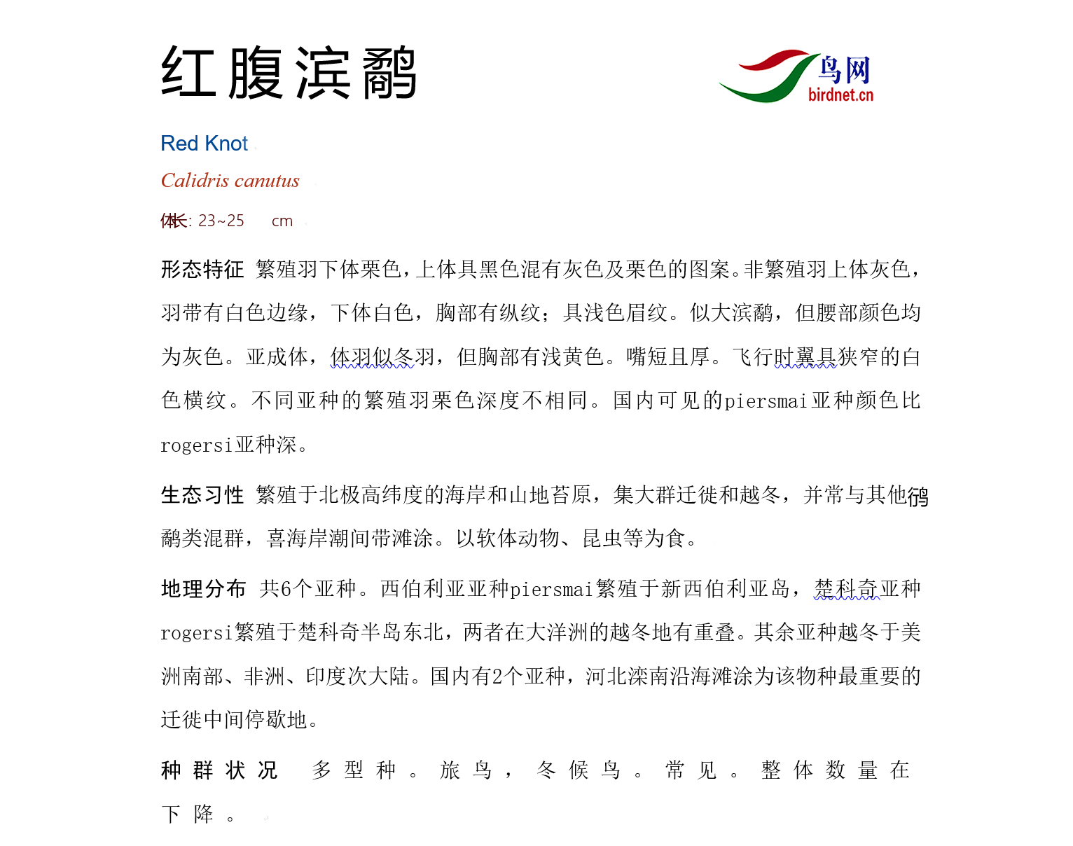 鸟类名称:红腹滨鹬