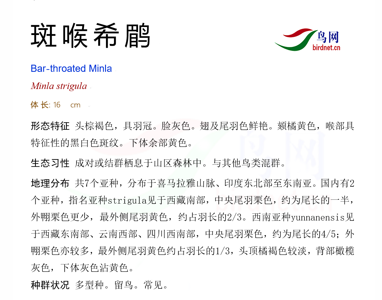 鸟类名称:斑喉希鹛
