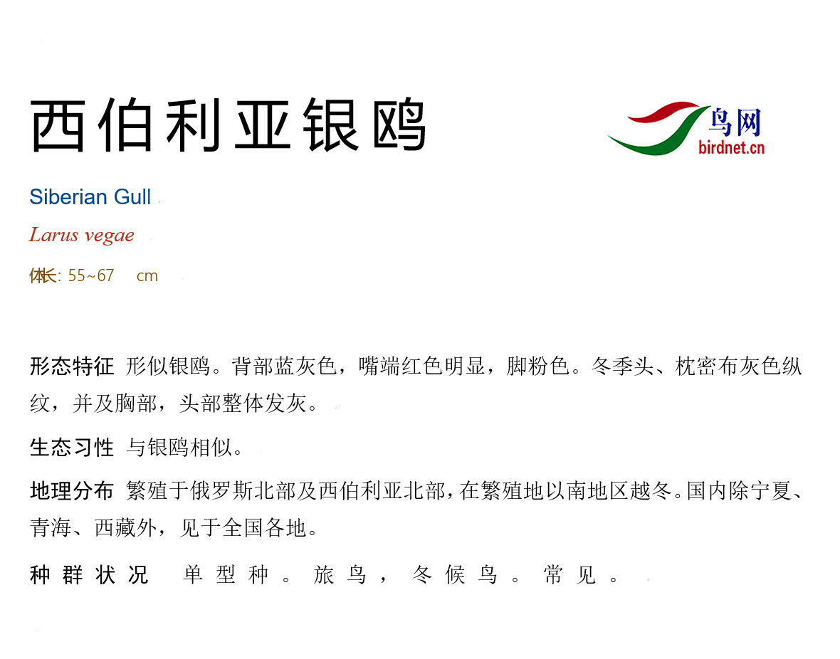鸟种目科:鸻形目 > - 鸥科 > - 西伯利亚银鸥
