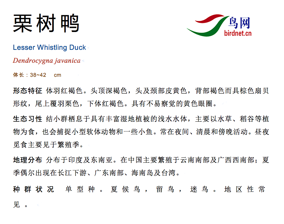 鸟类名称:栗树鸭