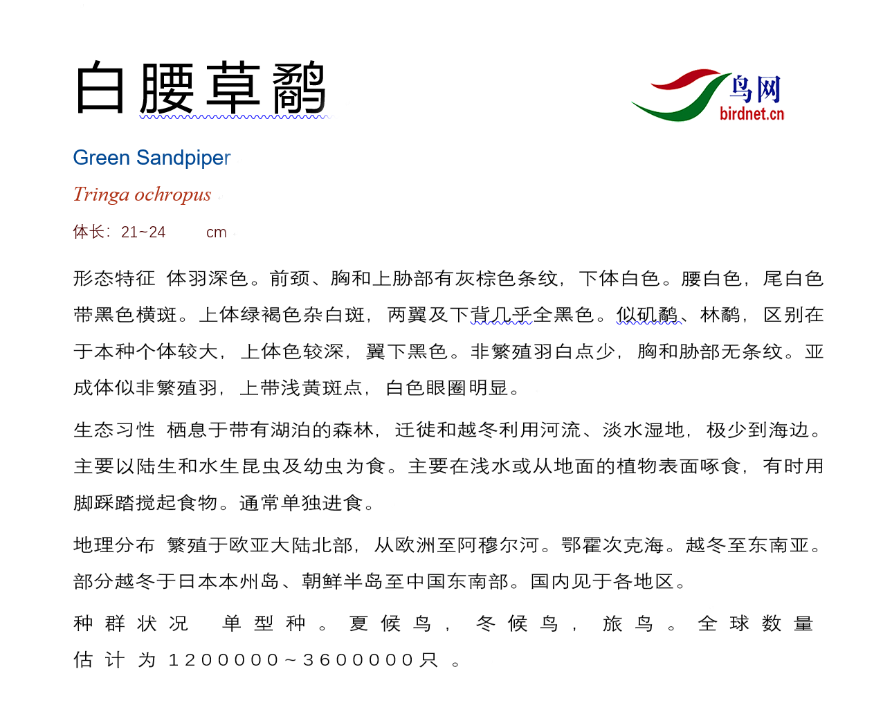 鸟种目科:鸻形目 > - 鹬科 > - 白腰草鹬
