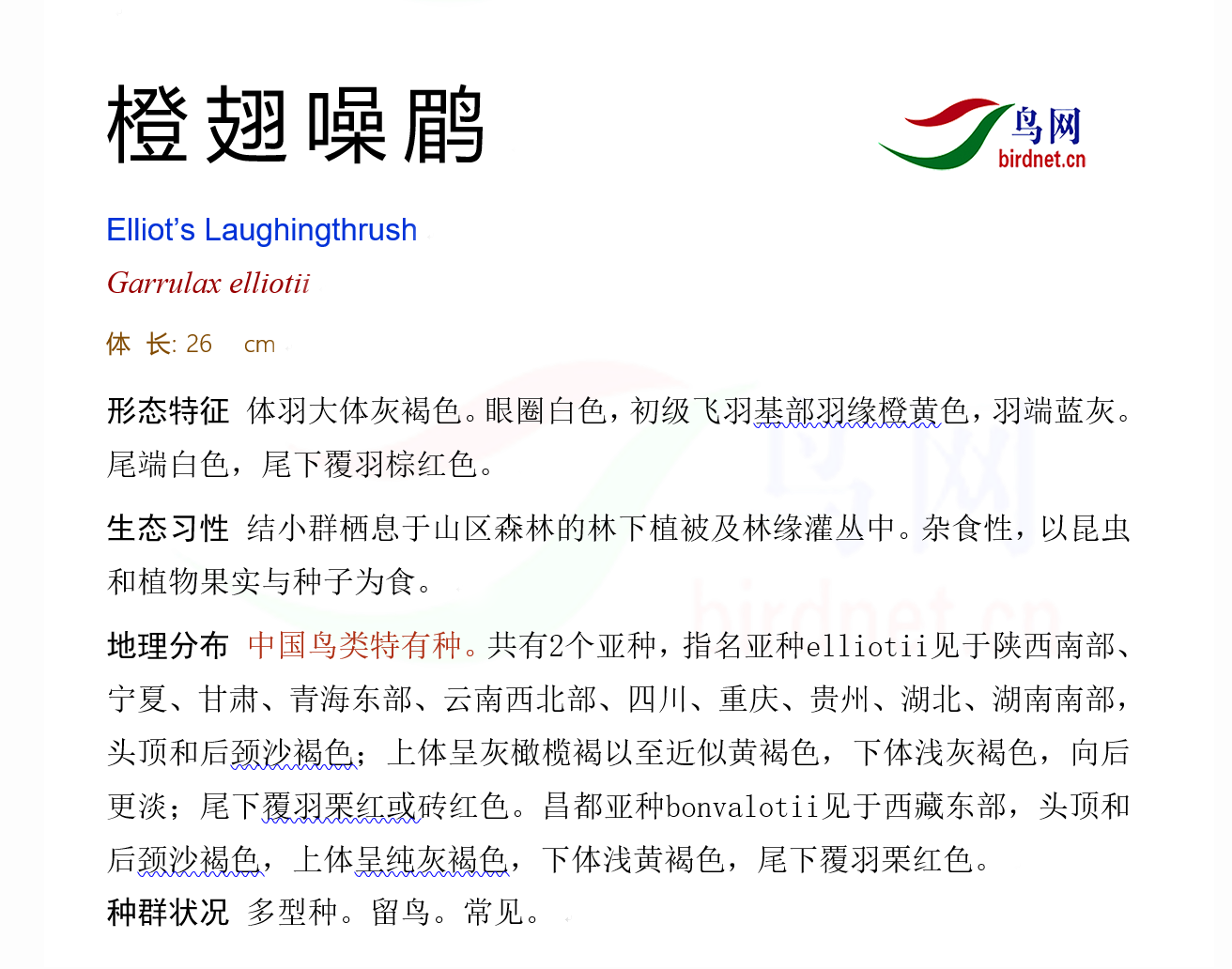 鸟种目科:雀形目 > - 噪鹛科 > - 橙翅噪鹛