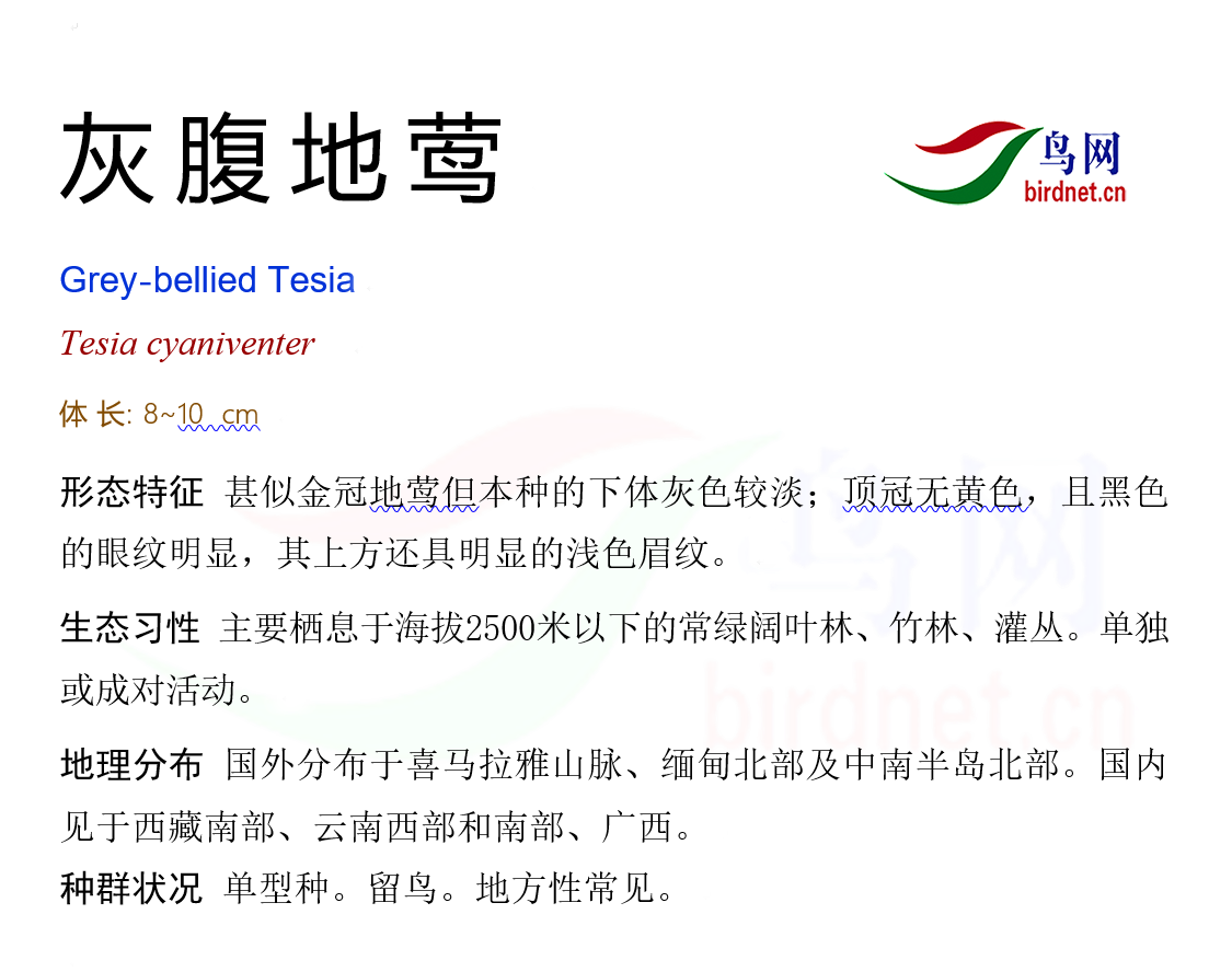 鸟种目科:雀形目 > - 树莺科 > - 灰腹地莺