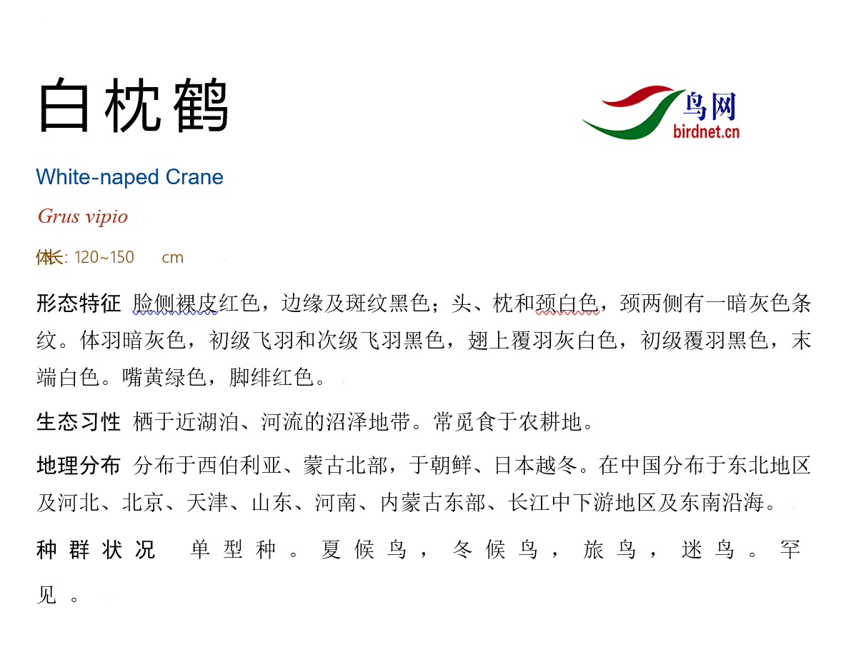 鸟种目科:鹤形目 > - 鹤科 > - 白枕鹤