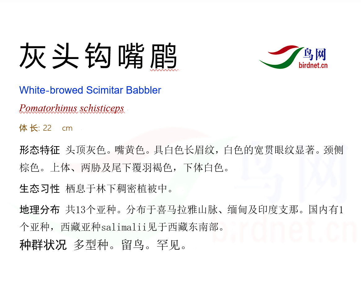 鸟种目科:雀形目 > - 林鹛科 > - 灰头钩嘴鹛