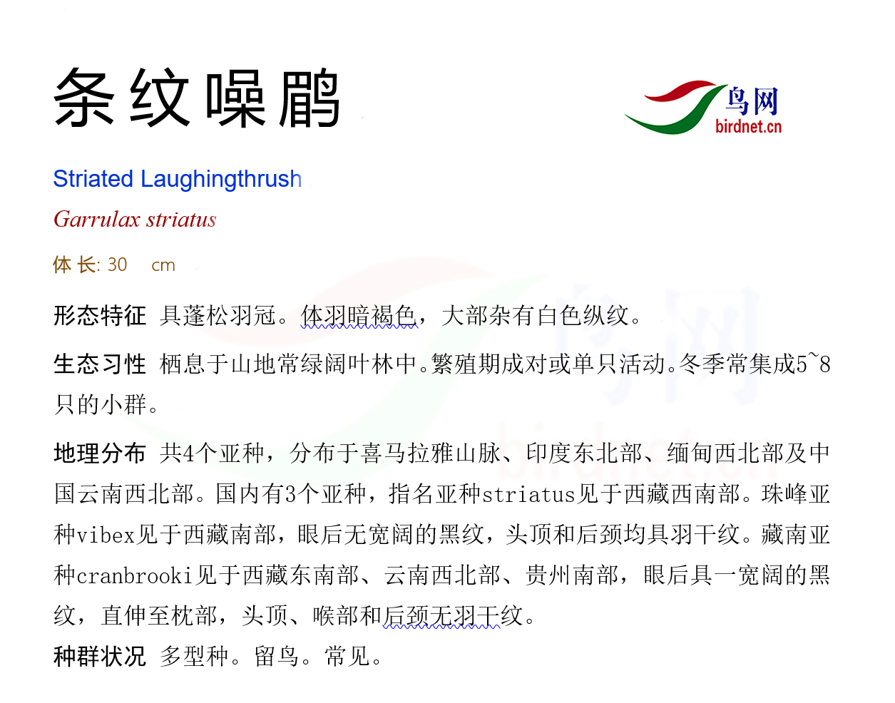 鸟种目科:雀形目 > - 噪鹛科 > - 条纹噪鹛