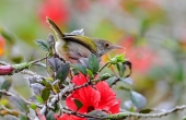 红花春鸟共新景