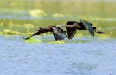 双飞的赤麻鸭