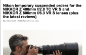 尼康暂停订购尼克尔 Z 400mm f/2.8 TC VR S 和尼克尔 Z 800mm f/6.3 VR S 镜头