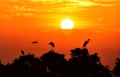 霞光鹭影