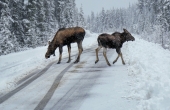 因大雪,很多景点已经关闭,驼鹿到路上觅食化雪剂中的食盐
