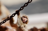 白化的黑叶猴 尝鲜