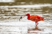 彩鹮在蓝天下飞过