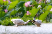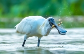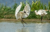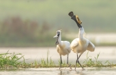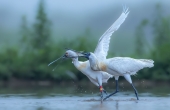 黑脸琵鹭追打