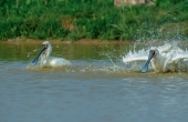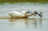 黑脸琵鹭抢魚