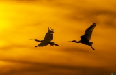 黑脸琵鹭伴霞飞