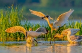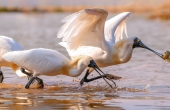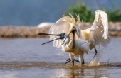 黑脸琵鹭打斗
