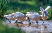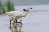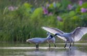 黑脸琵鹭抢魚