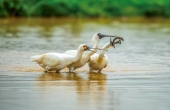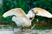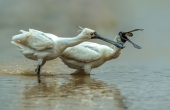 黑脸琵鹭抢魚