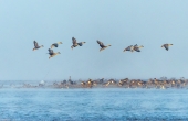 大雾中雁落江心孤岛