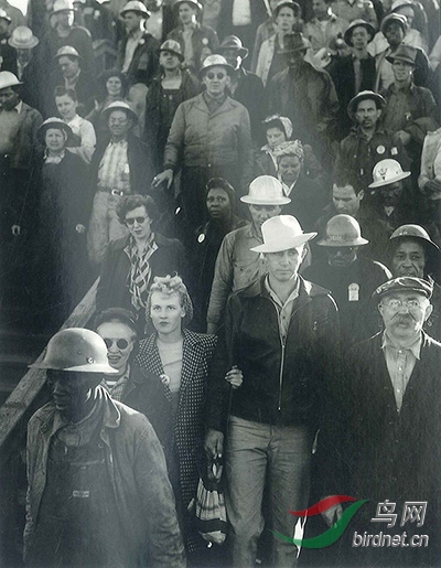移民的母亲,尼泊莫,加利福尼亚州,1936年 《移民的母亲》是兰格毕生的代表作,不仅让她跃登国际摄 影舞台,跻身杰出摄影家之林,也成为农业安全局为期7张作品 中最经典的一幅。画面中的女主角名叫佛罗伦斯·欧文斯·汤普 森,当年只有32岁,是7个小孩的母亲,在加州农庄打零工维 生,是典型的贫农。当天他们一家人刚结束甜菜釆收的工作,准 备沿着101公路,开车去另一农村帮忙采收莴苣。不料途中车辆 抛锚,车子顺着下坡滑行到摘采豌豆的尼泊奠营区。他们惊讶地 发现营区内采豌豆的农民竟有两三千人,都是未受教育、无一技 之长四处漂泊的农民。这时她的丈夫带着孩子去镇上找修车师 傅,留下衣衫褴褛的佛罗伦斯带着3个年幼的孩童,在临时帐篷 内休息。 晚年兰格回忆起当时拍照的情境,她说:“我已不记得如 何向她说意,十分钟内我连续按了六次快门,一次比一次靠近她。 她主动透露,一家人是靠捡拾野地蔬菜与抓野鸟果腹,作为被拍 照的对象可能会改善她们的困所以帮我完成拍摄工作….,”这 些照片立即披露在《旧金山日报》,报道了这涌入三千余饥饿农 民的尼泊莫营区。几天之后,州政府募集了2万磅的食物送达营 区,成为这张照片少为人知的一段佳话。