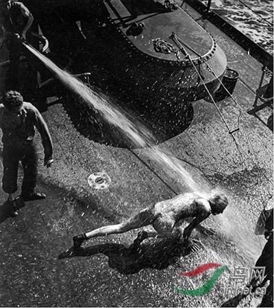 二战时期.太平洋战役.邦克山航空母舰上,一次穿越赤道的仪式,1943年