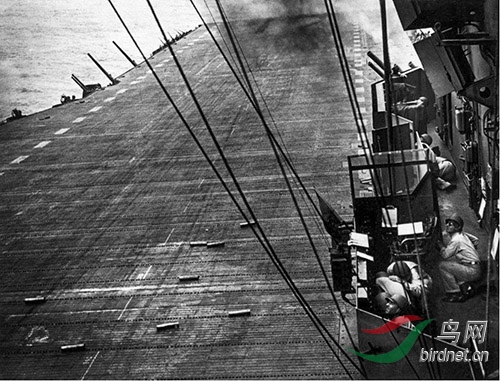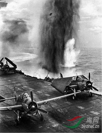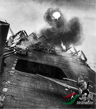 二战时期.太平洋战役,美国空袭了被日本占领的拉比岛,被日本飞机攻击的“邦克山”航空母舰,1943年