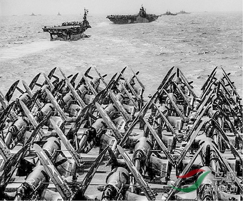 二战时期.太平洋战役,邦克山航空母舰的飞行甲板。机组人员向“复仇者”号飞机运送炮弹,1943年 二战时期.太平洋战役.邦克山航空母舰上,准备攻击日本占领的群岛,1943年 二战时期.太平洋战役.炮弹被装载到邦克山航空母舰上的飞机上,1943年. 二战时期.太平洋战役.美国海军的飞机在“邦克山号”航空母舰的甲板上,1943年 二战时期.太平洋战役.在邦克山号航空母舰上,美国海军的一名飞行员在袭击日本占领的岛屿之前在船员室作了简报,1943年