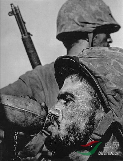 尤金 史密斯 (1918-1978) 尤金,史密斯1918年出生于美国堪萨斯州,是国际知名的新闻摄影记者。他以不妥协的专业态度和高尚的道德标准,使得新闻摄影成为具有真相的艺术摄影。18岁高中毕业后,他就为两家当地报社拍照,开始其职业摄影生涯。后来他搬到纽约市,为《新闻周刊》拍照,以追求完美的个性与暴躁的脾气闻名圈内。后来竞因拒绝使用中型相机工作,被社方开除。1939年史密斯加入《生活》杂志摄影团队。“二战”’时,他参与了太平洋战争中许多美军跳岛战役的采访,如塞班岛、硫磺岛与关岛之血战。1945年在冲绳战役中他被迫击炮打伤,伤愈后回到《生活》杂志,工作到1954年为止。他的传世作品包括《太平洋战争之塞班岛血战》《史怀哲医师非洲行医》《西班牙村落》《匹兹堡市》《美国乡村医生》等等。1957年他加入了马格南图片社,1971年随日籍妻子回日本,发表水俣市工厂汞污染事件的报道摄影,曾被人打成重伤,是摄影伸张社会正义的代表。晚年他移居亚利桑那州图森市,并在亚利桑那大学执教,1978年因突发性中风而死,得年60岁。 塞班岛,1944年 1944年6月15日至7月9日,在日本首都东京以南1500英里的太平洋小岛——塞班岛上,美军经过24天的浴血奋战,共牺牲3000位陆战队员,1万多人受伤;而日军则有3万余人遭歼灭,当地日本居民共计2.2万人投海自尽。美军在海空军投入大量战力的情况下,最终取得了关键性的胜利。上面这张照片是尤金。史密斯在塞班岛血战的末期所摄,照片中一位满脸胡茬的美国陆战队士兵,脸上尽是汗水与尘土,正拿起水壶喝水。画面里没有步枪与刺刀,也没有尸横遍野的景象,却以间接的方式来阐述战争的恐怖与悲惨。其实一张动人的照片所传达的信息不能太过详尽与直白,最好使用有力的视觉符号,以转弯抹角的方式去陈述表达。照片里战士肮脏的脸孔,就是战争最好的批注与符号,这是控诉人类战争的最有效利器。 1925年,日本化工业龙头的氮肥公司在熊本县设厂,他们把含汞的废水直接排放到了渔民赖以生存的渔场——水俣湾中。30年后,水俣湾附近发现了一种怪病,起初发病的是猫,病猫会步履不稳,四肢抽搐,甚至跳海死去。不久病征蔓延至人类,患者时常口齿不清、表情痴呆、手脚麻痹变形、眼瞎、精神失常、身体弯曲如弓,最后尖叫而亡。可怕的是此病还会遗传给下一代,当地居民因为不知此怪病的由来,故称之为“水俣病”。官方经过数年的调查研究,终于证实是因为人畜长期食用含有汞的水产品所致。
