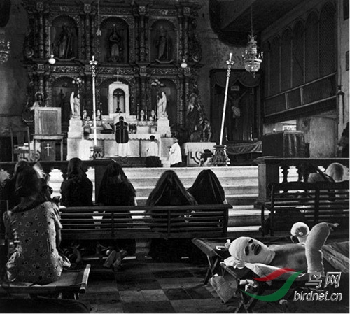 二战时期.太平洋战役.菲律宾莱特岛.在莱特大教堂里临时安置了美军士兵医院,1944年 二战时期. 太平洋战役. 菲律宾莱特岛. 莱特大教堂,1944年