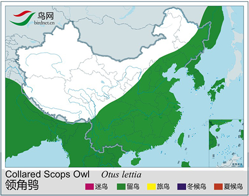 综述:体型略大(24厘米)的偏灰或偏褐色角鸮。具明显耳羽簇及特征性的浅沙色颈圈。上体偏灰或沙褐,并多具黑色及皮黄色的杂纹或斑块;下体皮黄色,条纹黑色。