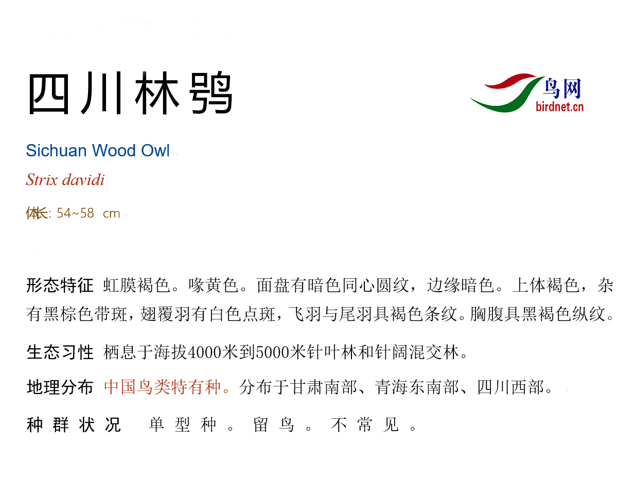 叫声:求偶叫声为深沉悠远的woo--,后转为hoohoohoo;或连续鸣叫woo-hoohoohoo。雌鸟叫声类似但较尖锐,直转,通常对雄鸟进行回应。在巢区附近,雌鸟多有告警叫声,似犬吠。而育雏其间,雌鸟多发出gege叫声。 |