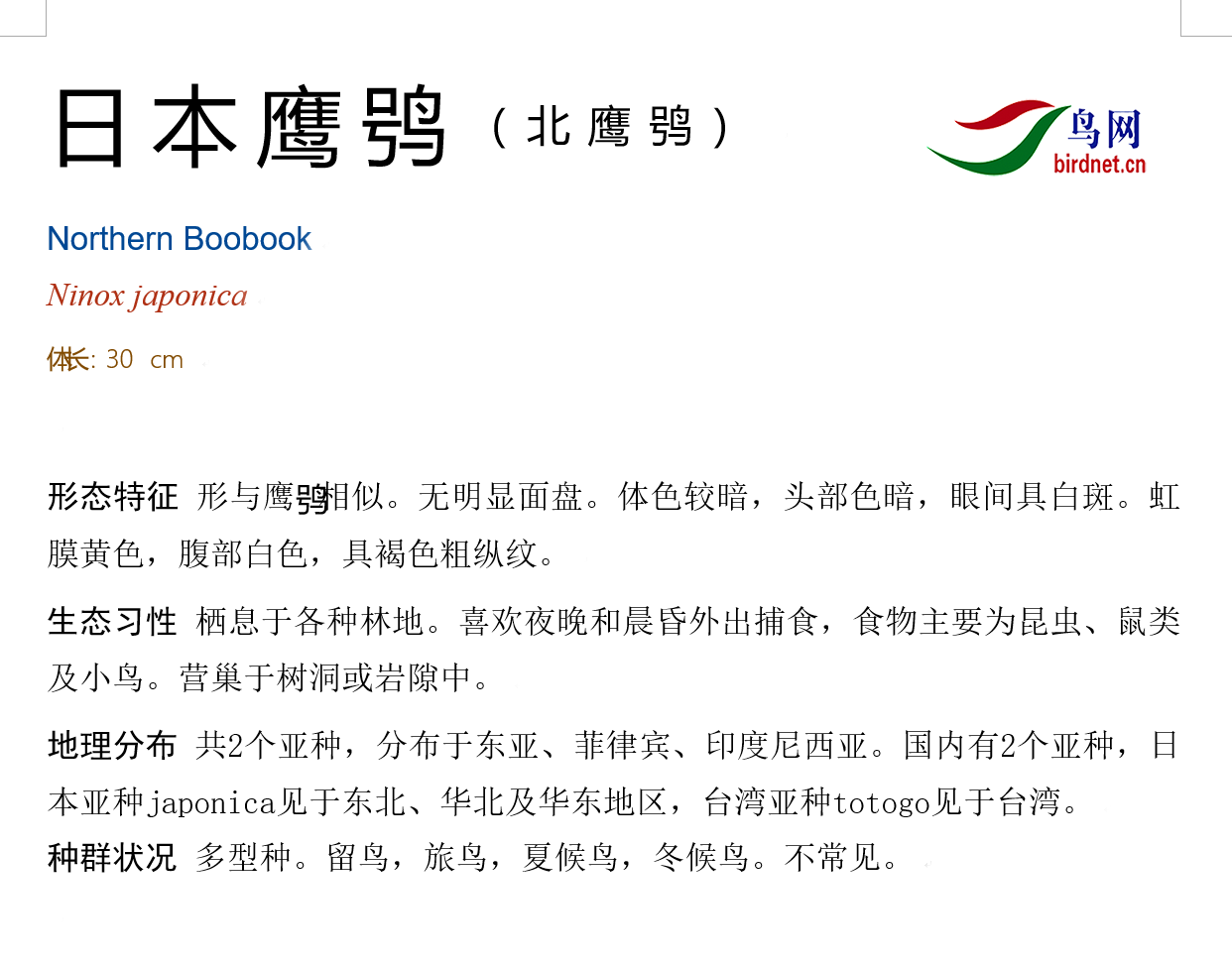 [鸮形目] 日本鹰鸮 |