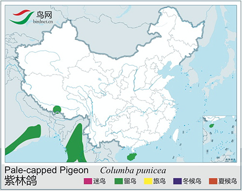 分布于印度东北部至东南亚。在西藏南部及海南岛为罕见留鸟。在西藏东南部的亚热带地区也应有见。结小群至大群活动。飞行缓慢如绿皇鸠。
