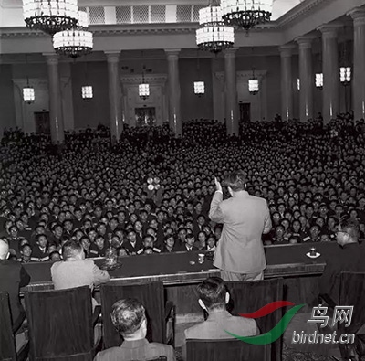 毛泽东在莫斯科大学给中国留学生讲话 (摄影:侯波 于1957年)