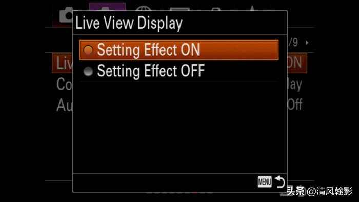 电子取景器的主要优势之一是能够实时预览曝光以及颜色和对比度。如果出现问题,您会立即注意到,这就是为什么在大多数情况下,我建议您保持此功能处于激活状态。在索尼相机上,它被称为实时取景显示/设置效果。