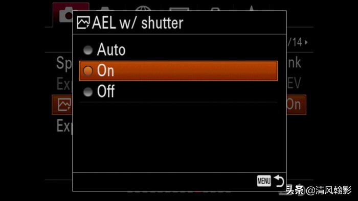- 向下滚动到带快门的AEL并选择Off。