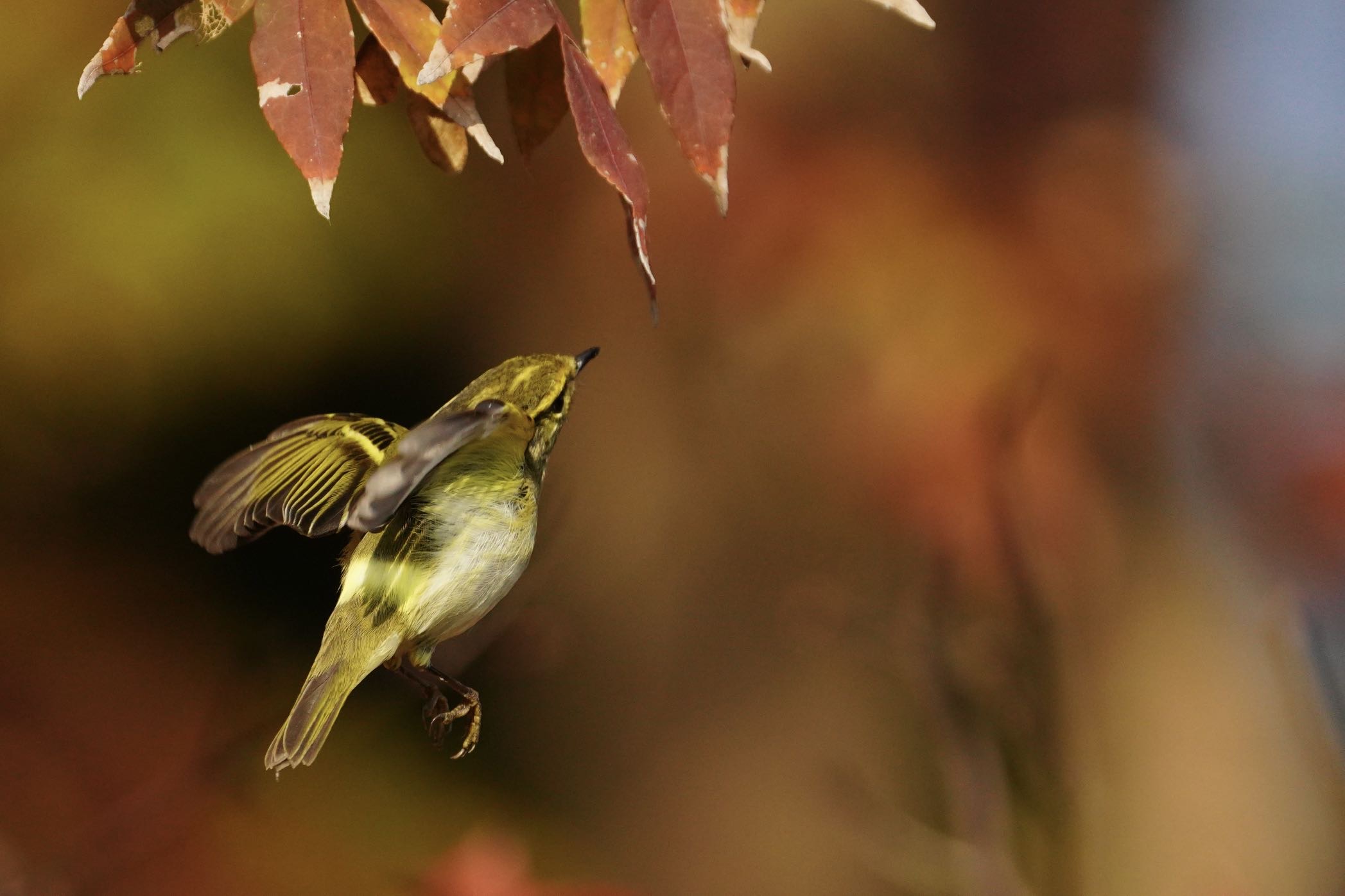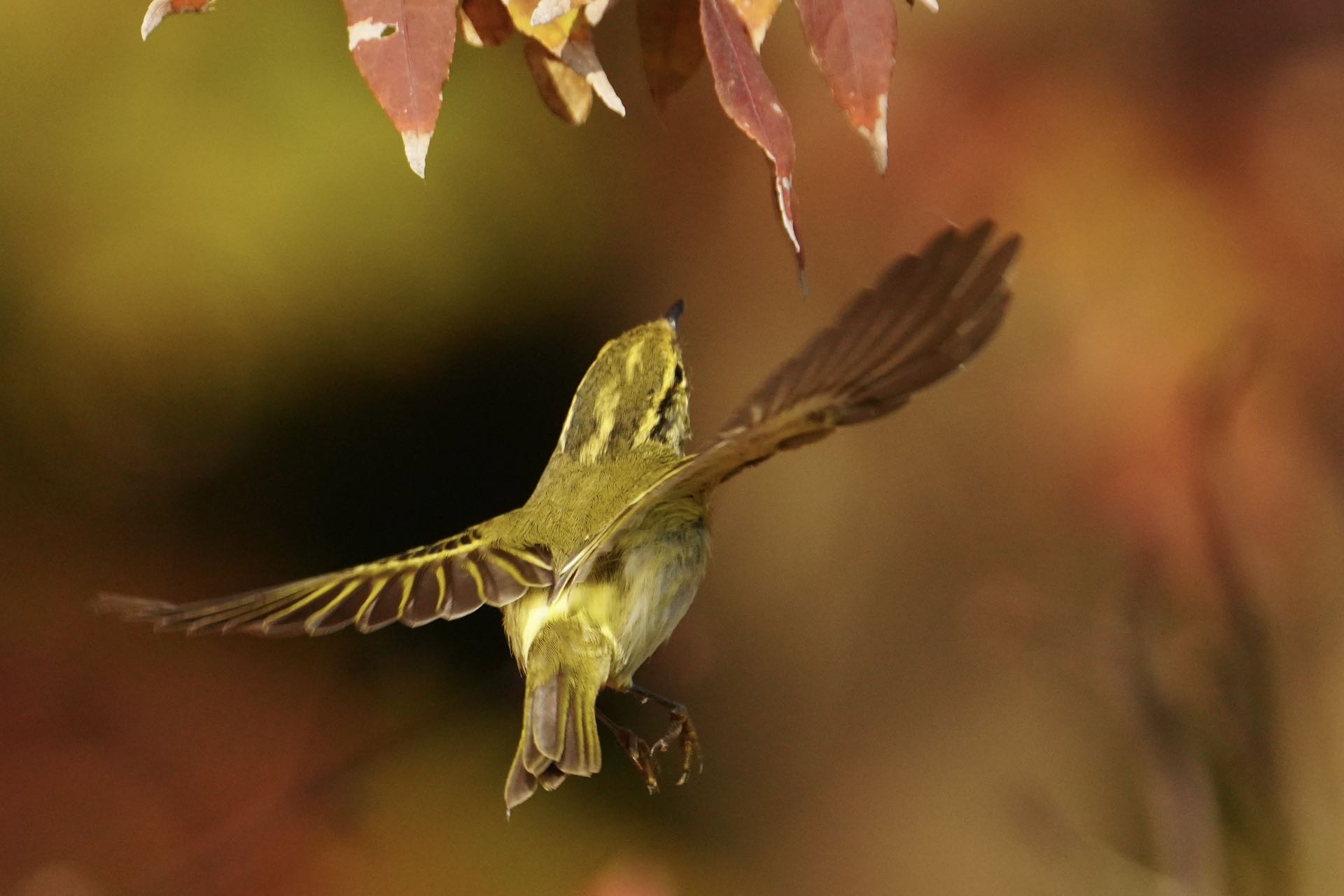 柳莺悬停展姿势