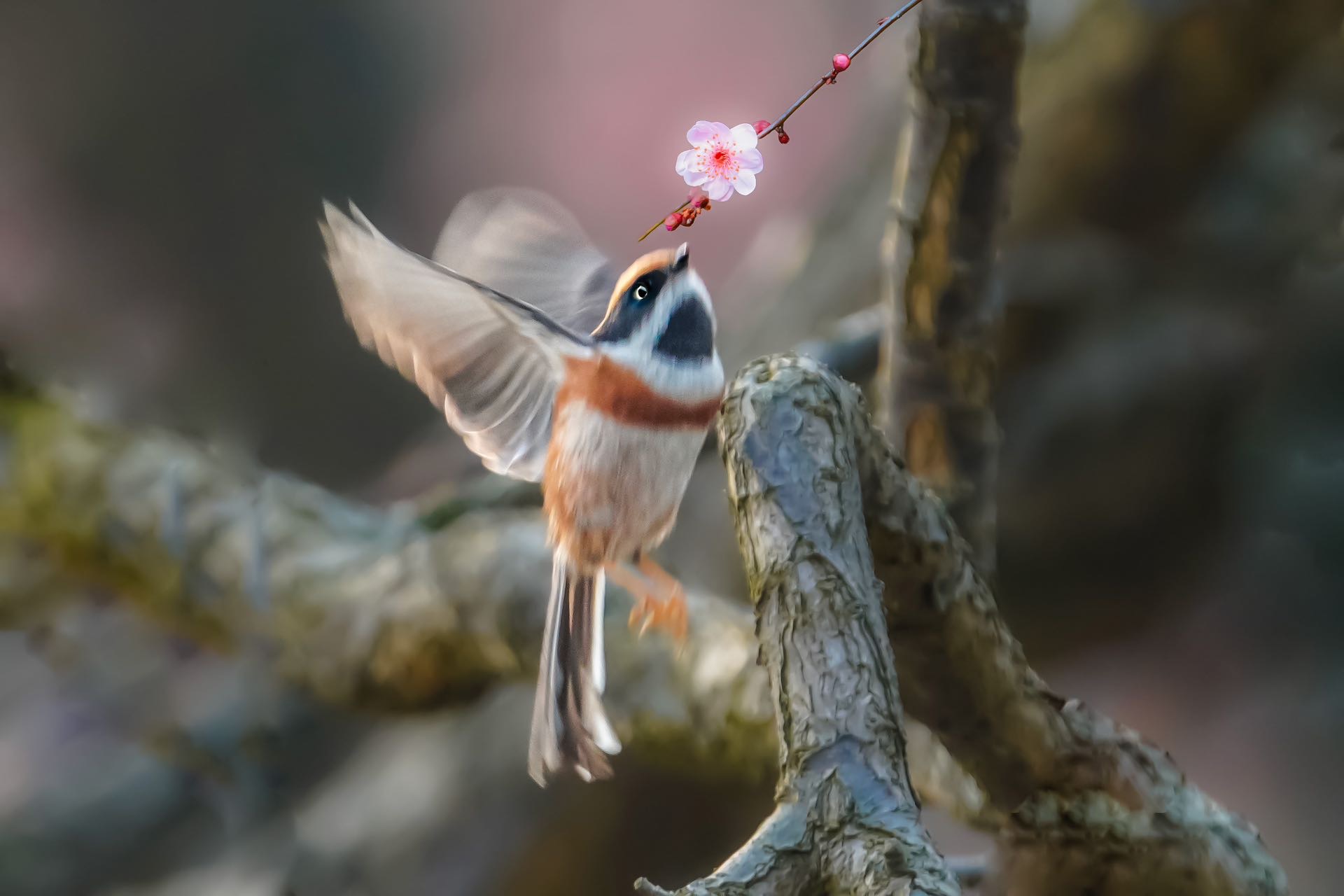 红头长尾山雀登梅