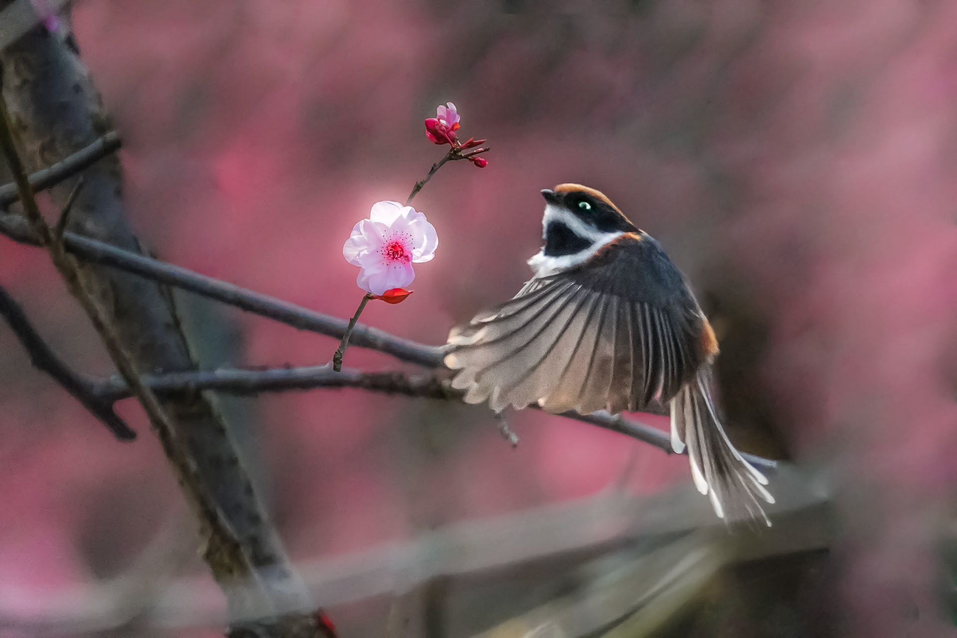红头长尾山雀登梅