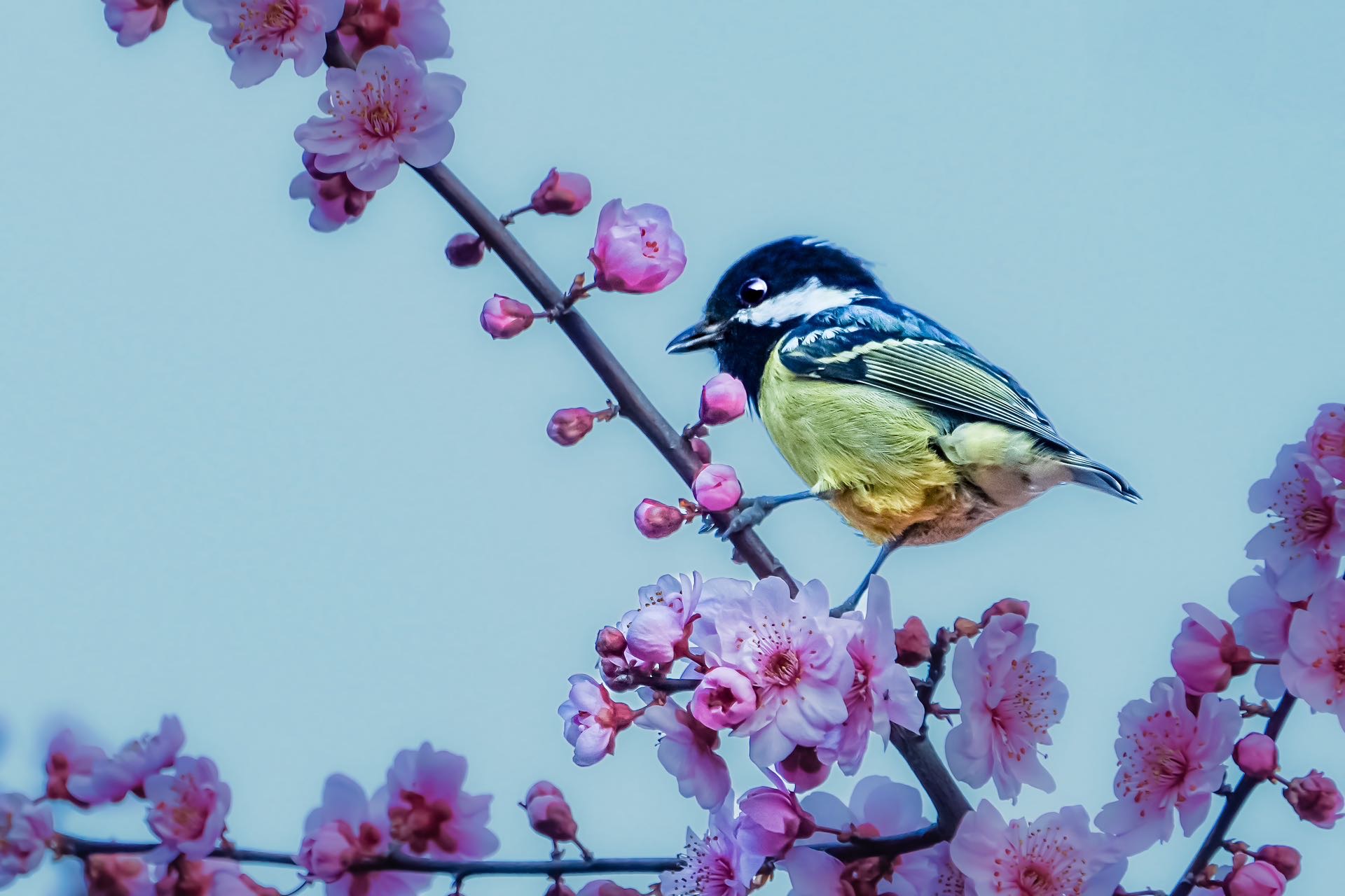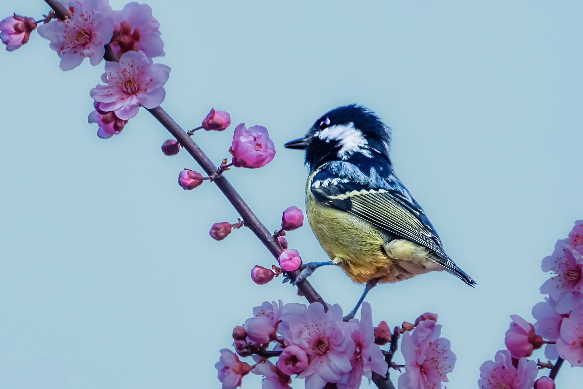 黄腹山雀登美人梅